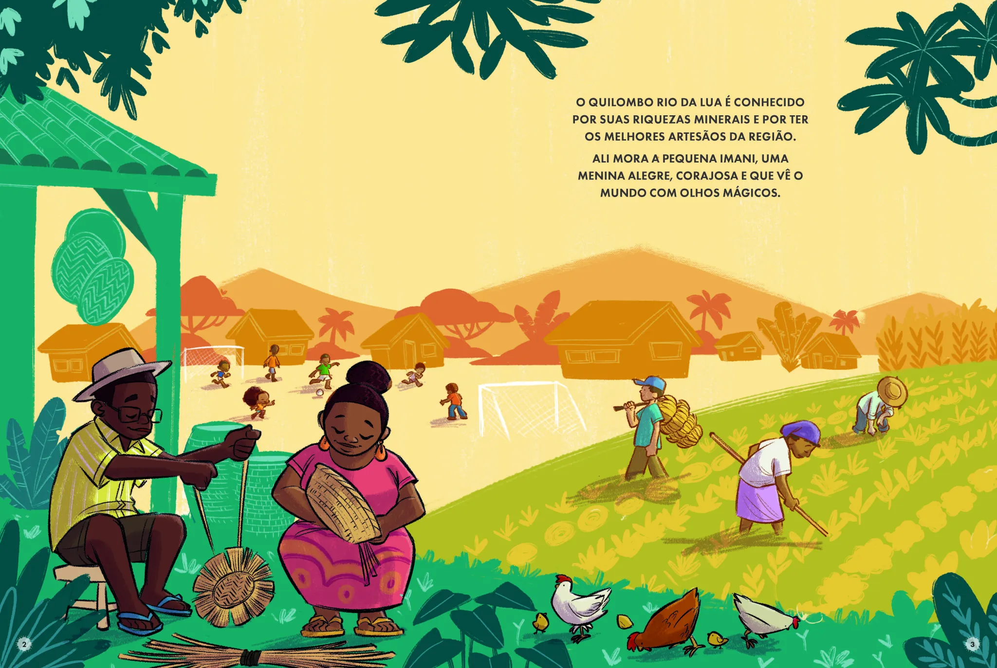 Num quilombo chamado Rio da Lua, vive a pequena Imani, uma menina alegre e corajosa que vê o mundo com olhos mágicos! O maior desejo de Imani é participar das rodas de capoeira, assim como as outras crianças do quilombo. Nessa trajetória, a direção do vento, a intensidade da luz, os cheiros e os sons serão seus principais guias. A partir de um tesouro desaparecido, uma grande lição será revelada: enxergar vai muito além do alcance dos olhos! Trata-se de uma história sensível que abraça a cultura afro-brasileira, a inclusão, a acessibilidade e a autonomia.