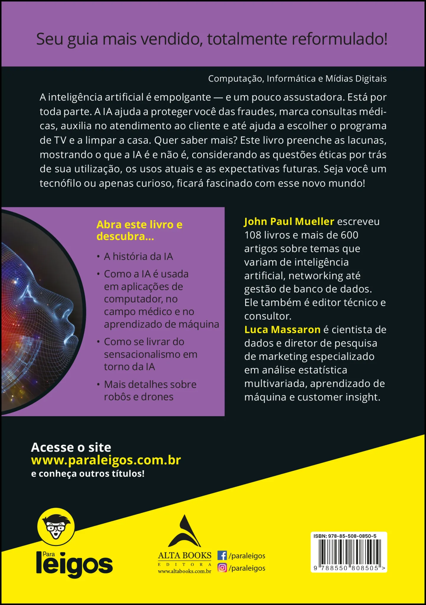 A inteligência artificial é empolgante — e um pouco assustadora. Está por toda parte. A IA ajuda a proteger você das fraudes, marca consultas médicas, auxilia no atendimento ao cliente e até ajuda a escolher o programa de TV e a limpar a casa. Quer saber mais? Este livro preenche as lacunas, mostrando o que a IA é e não é, considerando as questões éticas por trás de sua utilização, os usos atuais e as expectativas futuras. Seja você um tecnófilo ou apenas curioso, ficará fascinado com esse novo mundo!