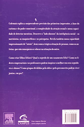 O renomado autor de Inteligencia Emocional, Daniel Goleman, surge com mais um trabalho de repercussao mundial, Nele, Goleman defende um novo modelo de inteligencia baseado no emergente campo da neurociencia social,Afirmando que a nossa interacao social e capaz de moldar tanto nosso comportamento como o funcionamento do nosso organismo, o autor apresenta o conceito de Inteligencia Social, Mostrando o poder da interacao social na influencia do humor e da quimica cerebral, o autor examina o quanto uma ofensa ou uma experiencia social desagradavel podem ser prejudiciais, e revela os efeitos positivos de substancias neuroquimicas que sao liberadas em situacoes que envolvem amor e cuidados, O livro apresenta-nos uma nova perspectiva sobre nossas relacoes sociais, mostrando que nossas mentes estao conectadas por valores como altruismo, compaixao, preocupacao e compreensao, e desenvolvemos a inteligencia social para estimular essas ‘habilidades’ em nos mesmos e nos outros,