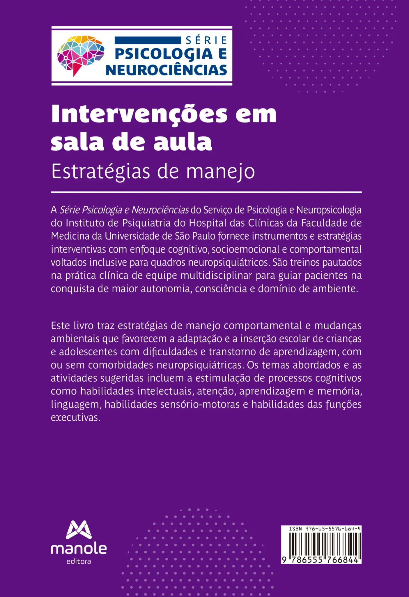 A Série Psicologia e Neurociências do Serviço de Psicologia e Neuropsicologia do Instituto de Psiquiatria do Hospital das Clínicas da Faculdade de Medicina da Universidade de São Paulo fornece instrumentos e estratégias interventivas com enfoque cognitivo, socioemocional e comportamental voltados inclusive para quadros neuropsiquiátricos. São treinos pautados na prática clínica de equipe multidisciplinar para guiar pacientes na conquista de maior autonomia, consciência e domínio de ambiente.
