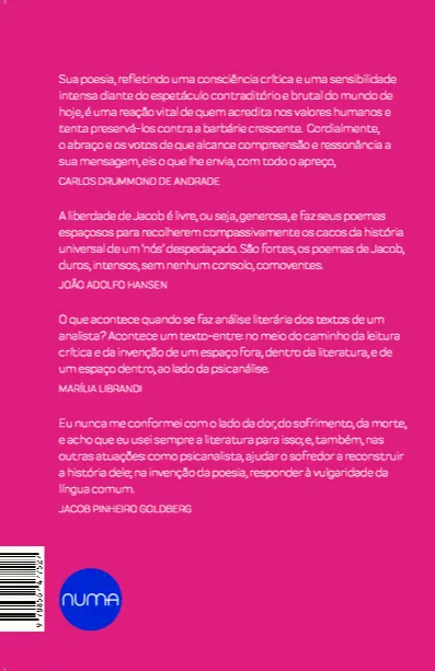 O psicólogo Jacob Pinheiro Goldberg ganha a mais completa análise literária de sua obra poética. Escrito pela professora de literatura brasileira da Universidade de Stanford e da Universidade de Princeton, Marília Librandi, o livro foi sua tese de doutorado em Teoria Literária na USP.