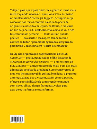 Ilustrada com monotipias de Luiz Zerbini e organizada por Omar Salomão, esta antologia é um convite para refletir sobre o significado de viajar — e de voltar para a própria casa. “Viajar, para que e para onde,/ se a gente se torna mais infeliz/ quando retorna?”, questiona Waly Salomão no emblemático “Poema Jet-lagged”. A viagem surge como um dos temas centrais na obra do poeta de origem síria nascido em Jequié, na Bahia, e radicado no Rio de Janeiro. O deslocamento, como se vê, compõe um rico testemunho do percurso do autor — tanto íntimo quanto poético —, mas funciona também como provocação ao leitor: “perambule agarrado e desgarrado perambule”, aconselha em “Tarifa de embarque”. Ao reunir versos de uma das principais vozes da cultura brasileira do século XX, a presente antologia atesta que a viagem, assim como a poesia, oferece a possibilidade de compreender o mundo com novos olhos, alargar fronteiras, retornar de outra forma — em outras palavras, se transformar.
