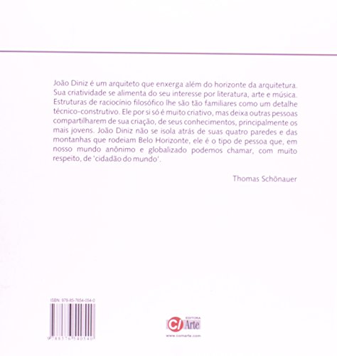 O depoimento e a obra de João Diniz registrados neste livro mostram um arquiteto de visão peculiar, cujo interesse percorre os mais diversos caminhos e linguagens, revelando um artista sensível e extremamente criativo. Neste livro temos acesso, além de seus projetos arquitetônicos, a sua relação com a música, a fotografia, a poesia, a literatura e as artes plásticas, sobretudo a escultura. Há ainda os encontros e convivências com outros arquitetos e artistas plásticos.