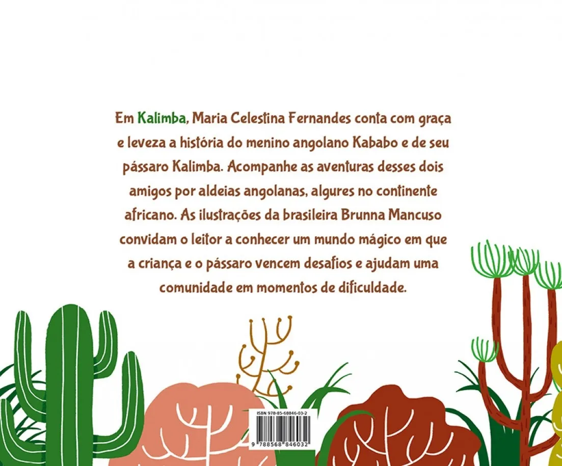 Nesse livro infantil angolano, a autora conta as aventuras do menino Kababo e de seu amigo, o pássaro Kalimba. No caminho entre aldeias de Angola, Kababo e Kalimba vencem desafios e ajudam os moradores a resolver suas dificuldades de sobrevivência.