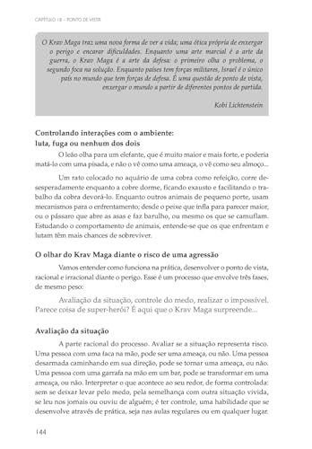 O livro nos conduz no tempo e no espaço, conectando as experiências que resultaram na criação do Krav Maga. O que podemos aprender da história de bravura de um povo que resistiu há mais de 2.000 anos de perseguição. A história do mundo redesenhado por duas guerras mundiais. A questão da sobrevivência revista por um homem. O nascimento do Estado de Israel e suas vitórias em todas as guerras. Realidades entrelaçadas e decifradas neste livro, após anos de pesquisa.