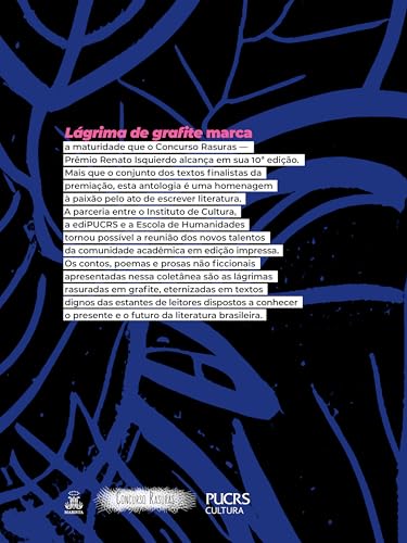 Lágrima de grafite marca a maturidade que o Concurso Rasuras – Prêmio Renato Isquierdo alcança em sua 10ª edição. Mais que o conjunto dos textos finalistas da premiação, esta antologia é uma homenagem à paixão pelo ato de escrever literatura. A parceria entre o Instituto de Cultura, a edipucrs e a Escola de Humanidades tornou possível a reunião dos novos talentos da comunidade acadêmica em edição impressa. Os contos, poemas e prosas não ficcionais apresentadas nessa coletânea são as lágrimas rasuradas em grafite, eternizadas em textos dignos das estantes de leitores dispostos a conhecer o presente e o futuro da literatura brasileira.