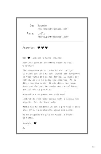 Em meio a surpresas e transformações, você vai acompanhar a jornada de duas garotas que estão descobrindo o que é crescer e como a amizade é capaz de tornar qualquer cenário mais acolhedor. Ao abrir das cortinas, vamos conhecer a história de Laila e Jasmim. Duas garotas de onze anos que, como outras tantas garotas de onze anos, gostam de pizza e de bater papo. Duas meninas únicas e especiais. Laila gosta das jujubas verdes, e Jasmim, das amarelas. Laila não pensa em besteira ou em coisas ruins, é rata de biblioteca e atleta consagrada. Jasmim adora escrever poemas, toma café puro — dois dedos, sem leite nem açúcar — como o pai. Duas grandes amigas que terão de aprender a lidar com a distância, morando em cidades diferentes. Laila tem o mar, os livros e o gato Manoel. Jasmim tem a montanha, a poesia e o teatro. Laila e Jasmim têm uma à outra — perto ou longe — e estão aprendendo, dia a dia, a viver histórias, lembranças, amores, perdas, aromas e sonhos.