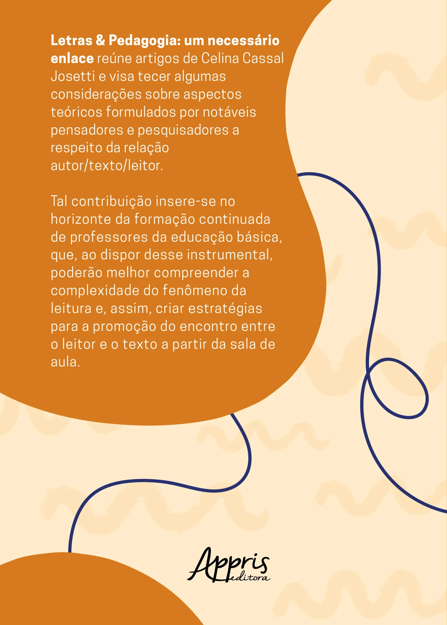 Letras & Pedagogia: um necessário enlace reúne artigos de Celina Cassal Josetti e visa tecer algumas considerações sobre aspectos teóricos formulados por notáveis pensadores e pesquisadores a respeito da relação autor/texto/leitor. Tal contribuição insere-se no horizonte da formação continuada de professores da educação básica, que, ao dispor desse instrumental, poderão melhor compreender a complexidade do fenômeno da leitura e, assim, criar estratégias para a promoção do encontro entre o leitor e o texto na sala de aula.
