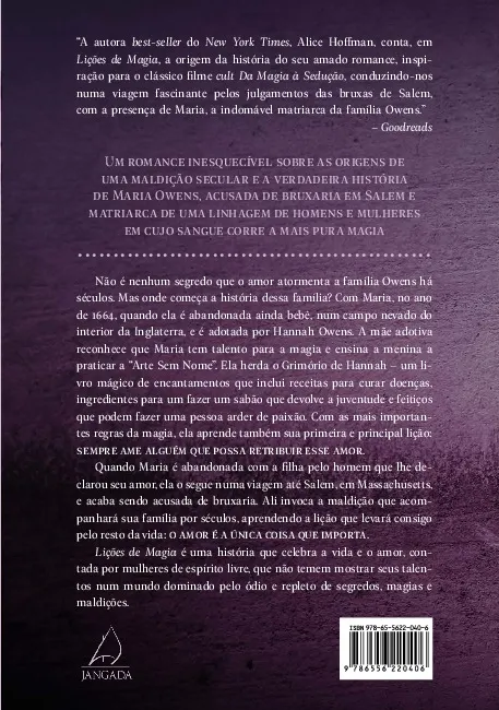 Não é nenhum segredo que o amor atormenta a família Owens há séculos. Mas onde começa a história dessa família? Com Maria, no ano de 1664, quando ela é abandonada ainda bebê, num campo nevado do interior da Inglaterra, e é adotada por Hannah Owens. A mãe adotiva reconhece que Maria tem talento para a magia e ensina a menina a praticar a “Arte Sem Nome”. Ela herda o Grimório de Hannah – um livro mágico de encantamentos que inclui receitas para curar doenças, ingredientes para um fazer um sabão que devolve a juventude e feitiços que podem fazer uma pessoa arder de paixão. Ela aprende também sua primeira e principal lição: sempre ame alguém que possa retribuir esse amor. Quando Maria é abandonada com a filha pelo homem que lhe declarou seu amor, ela o segue numa viagem até Salem, em Massachusetts, e acaba sendo acusada de bruxaria. Ali invoca a maldição que acompanhará sua família por séculos.