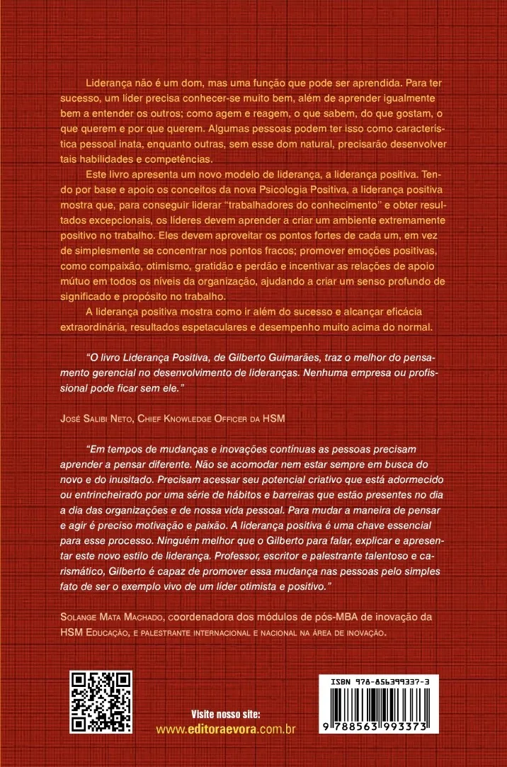 Liderança não é um dom, mas uma função que pode ser aprendida. Para ter sucesso, um líder precisa conhecer-se muito bem, além de aprender igualmente bem a entender os outros: como agem e reagem, o que sabem, do que gostam, o que querem e por que querem. Algumas pessoas podem ter isso como característica pessoal inata, enquanto outras, sem esse dom natural, precisarão desenvolver tais habilidades e competências. Este livro apresenta um novo modelo de liderança, a liderança positiva. Tendo por base e apoio os conceitos da nova psicologia positiva, a liderança positiva mostra que, para conseguir liderar “trabalhadores do conhecimento” e obter resultados excepcionais, os líderes devem aprender a criar um ambiente extremamente positivo no trabalho. Eles devem aproveitar os pontos fortes de cada um, em vez de simplesmente se concentrar nos pontos fracos; promover emoções positivas, como compaixão, otimismo, gratidão e perdão; e incentivar as relações de apoio mútuo em todos os níveis da organização, ajudando a criar um senso profundo de significado e propósito no trabalho. A liderança positiva mostra como ir além do sucesso e alcançar eficácia extraordinária, resultados espetaculares e desempenho muito acima do normal.