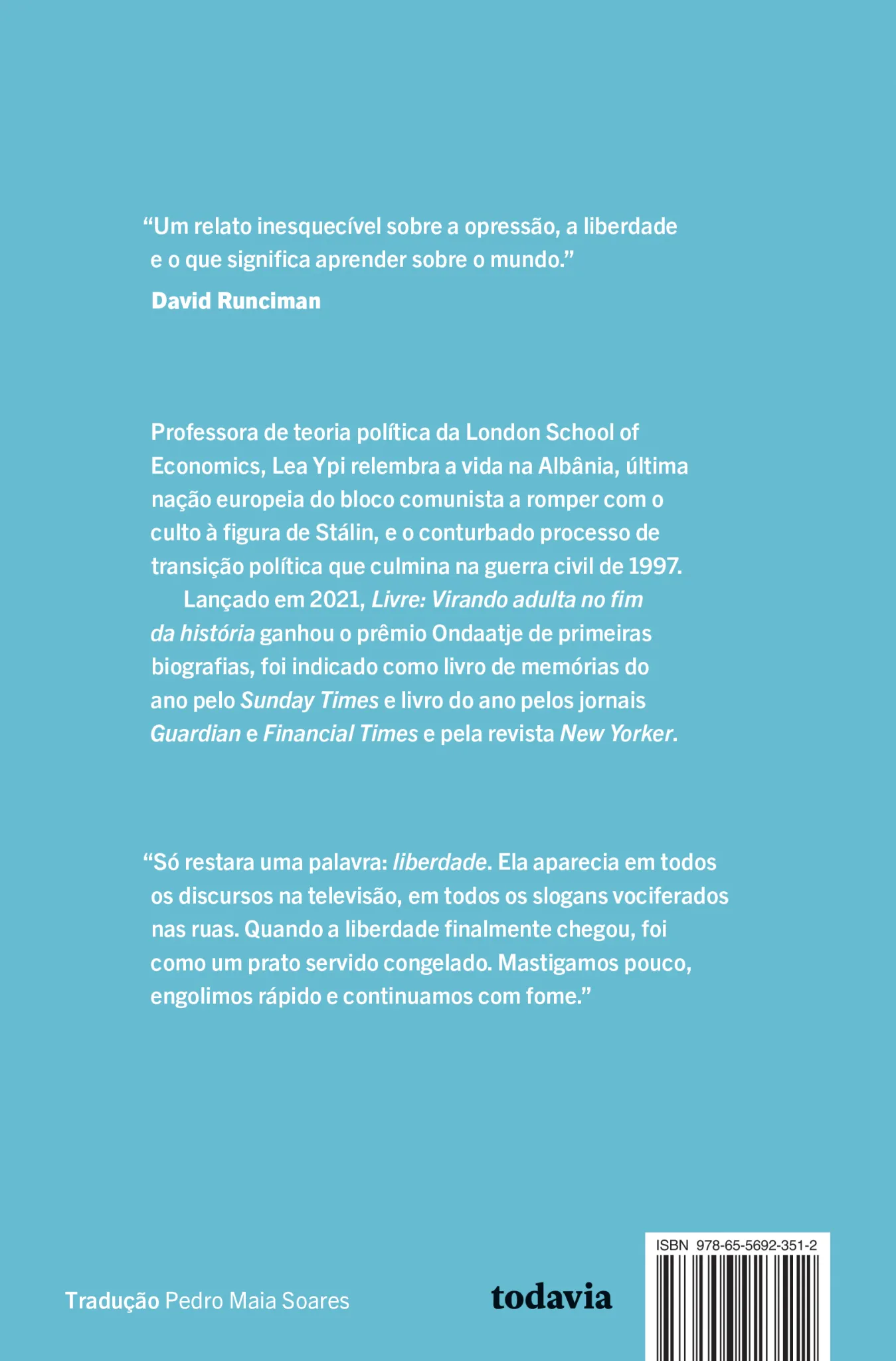 Este livro foi escrito ao longo do período de isolamento provocado pela pandemia de Covid-19. A experiência, ainda que em circunstâncias distintas, remeteu a autora ao lockdown vivido na Albânia, em 1997, em decorrência da guerra civil que sobreveio ao fim do regime socialista. Foi assim que nasceu Livre, misto de livro de memórias e teoria política que causou furor ao ser lançado no mundo de língua inglesa em 2021.