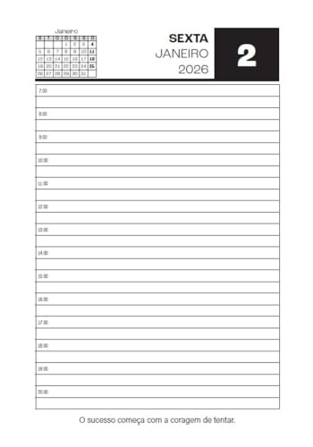 Transforme seus dias com a Agenda Diária 2026 – Sua aliada na produtividade! Organize-se com estilo e eficiência com esta agenda no tamanho ideal (15,5 x 12 cm), feita sob medida para acompanhar sua rotina com praticidade e elegância. 320 páginas premium datadas para 2026 – planeje cada dia com clareza, sem perder nenhum compromisso! Frases motivacionais diárias – comece cada manhã com inspiração e foco total. Capa dura super resistente e encadernação espiral – durabilidade garantida para o uso diário, sem perder a sofisticação.Perfeita para quem quer mais produtividade, organização e leveza no dia a dia. Estoque limitado – garanta agora a sua e comece 2026 com o pé direito!