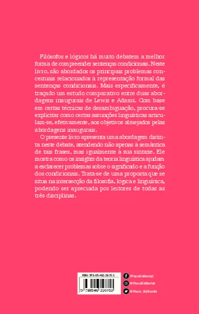 O presente livro apresenta uma abordagem distinta neste debate, atendendo não apenas à semântica de tais frases, mas igualmente à sua sintaxe. Ele mostra como os insights da teoria linguística ajudam a esclarecer problemas sobre o significado e a função dos condicionais. Trata-se de uma proposta que se situa na intersecção da filosofia, lógica e linguística, podendo ser apreciada por leitores de todas as três disciplinas.