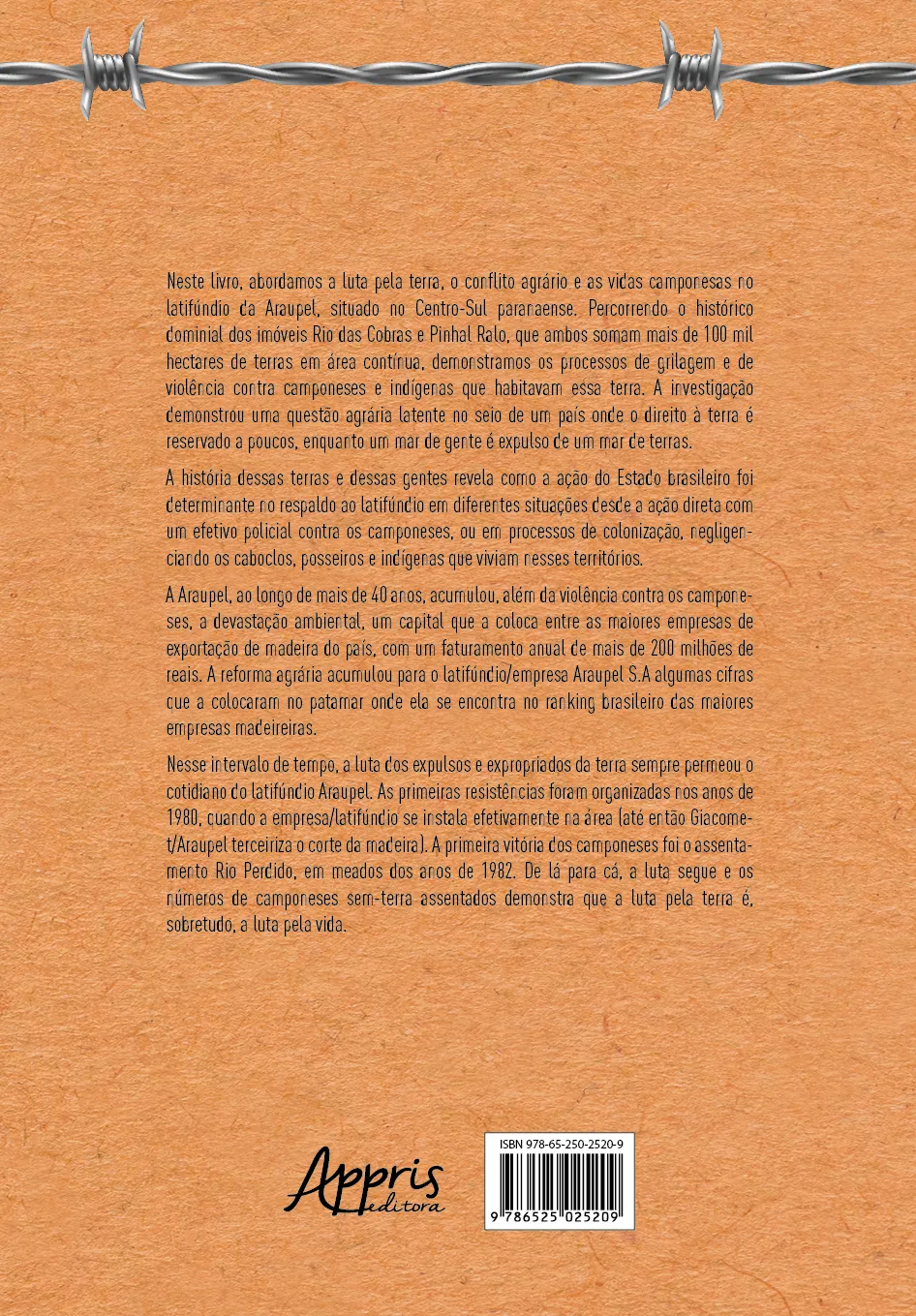 Neste livro, abordamos a luta pela terra, o conflito agrário e as vidas camponesas no latifúndio da Araupel, situado no Centro-Sul paranaense. Percorrendo o histórico dominial dos imóveis Rio das Cobras e Pinhal Ralo, que ambos somam mais de 100 mil hectares de terras em área contínua, demonstramos os processos de grilagem e de violência contra camponeses e indígenas que habitavam essa terra. A investigação demonstrou uma questão agrária latente no seio de um país onde o direito à terra é reservado a poucos, enquanto um mar de gente é expulso de um mar de terras.