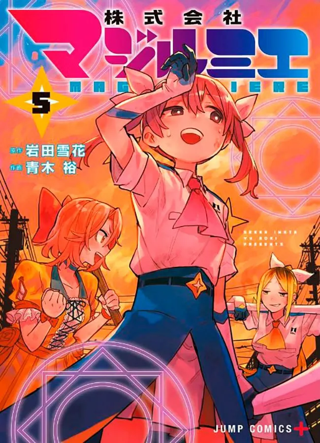 Kana sai em campo com Makino, uma Garota Mágica que foi transferida temporariamente de outra empresa. Quando as duas se encontram em uma situação crítica, Koshigaya corre para socorrê-las, porém…?!E mais, na reunião de Conselho das Organizações da Indústria de Magia, o “Sistema Alice” da Magilumiere é tópico de discussão. Para que a adoção do sistema seja aprovado para uso geral na indústria, a Magilumiere decide exterminar um novo tipo de Kaii cuja existência havia sido escondida?!TRABALHO x AÇÃO DE GAROTAS MÁGICAS, VOLUME 5!!