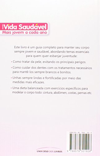 Este livro é um guia completo para manter seu corpo sempre jovem e saudável, abordando temas essenciais para quem quer esbanjar juventude: – Como tratar da pele, evitando os principais perigos; – Como cuidar dos dentes com os tratamentos necessários para mantê-los sempre brancos e bonitos; – Unhas sempre lindas e fortificadas; – Uma dieta balanceada com exercícios específicos para modelar o corpo todo: cintura, abdômen, costas, pernas etc.