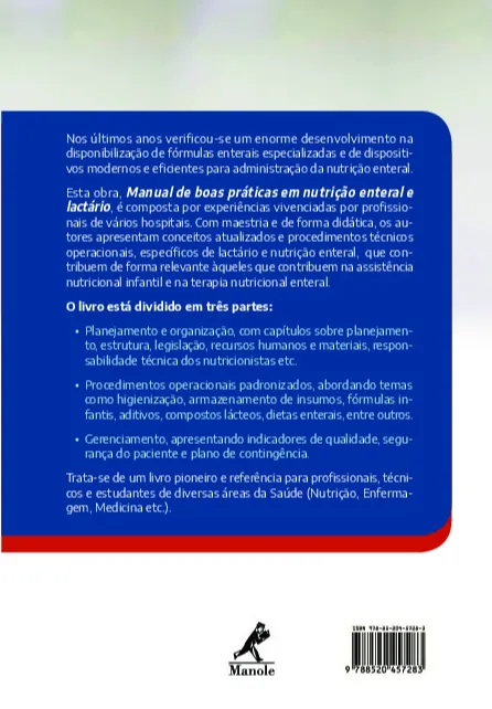 Especificação: Manual de boas práticas em nutrição enteral e lactário: