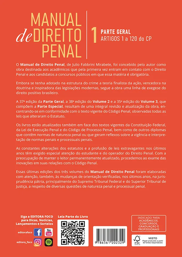 A 37ª edição da Parte Geral, a 38ª edição do Volume 2 e a 35ª edição do Volume 3, que compõem a Parte Especial, publicadas, agora pela Editora Foco, resultam de uma integral revisão e atualização da obra, encontrando-se em conformidade com o texto vigente do Código Penal, observadas todas as leis que alteraram o Estatuto.