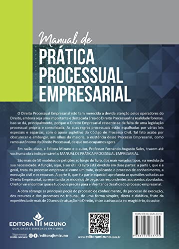 Em razão disso, a Editora Mizuno e o autor, Professor Fernando Augusto Sales, trazem até você uma obra indispensável: o MANUAL DE PRÁTICA PROCESSUAL EMPRESARIAL.