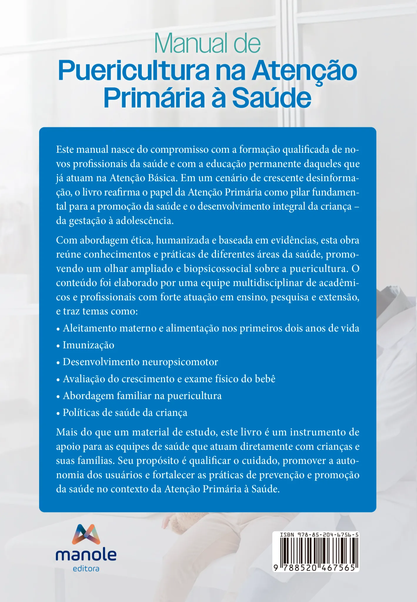 Este manual nasce do compromisso com a formação qualificada de novos profissionais da saúde e com a educação permanente daqueles que já atuam na Atenção Básica. Em um cenário de crescente desinformação, o livro reafirma o papel da Atenção Primária como pilar fundamental para a promoção da saúde e o desenvolvimento integral da criança – da gestação à adolescência.
