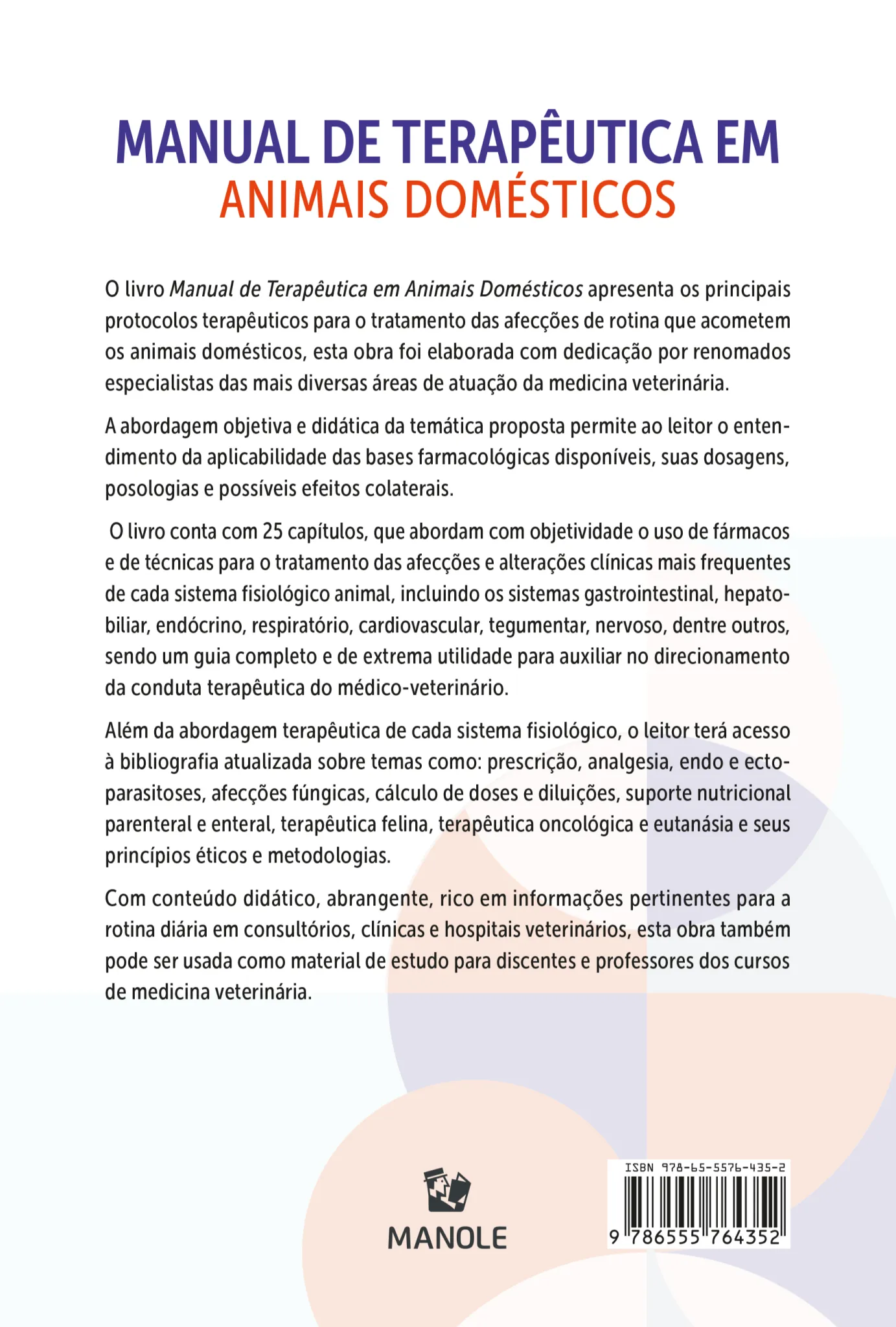 O Manual de Terapêutica em Animais Domésticos é uma obra formulada para o médico-veterinário clínico, com o direcionamento dos protocolos terapêuticos atualizados, de acordo com o quadro clínico e a sintomatologia apresentados pelo paciente.
