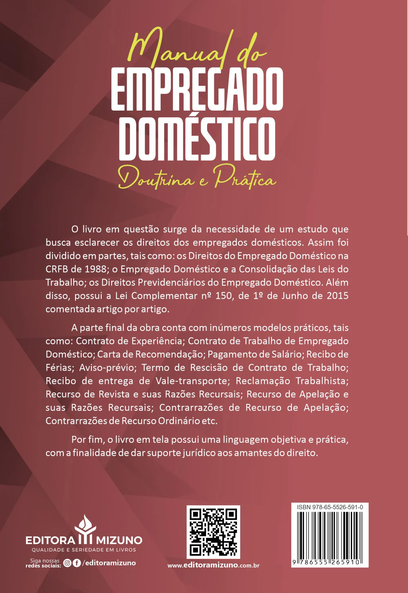O livro em questão surge da necessidade de um estudo que busca esclarecer os direitos dos empregados domésticos. Assim foi dividido em partes, tais como: os Direitos do Empregado Doméstico na CRFB de 1988; o Empregado Doméstico e a Consolidação das Leis do Trabalho; os Direitos Previdenciários do Empregado Doméstico. Além disso, possui a Lei Complementar nº 150, de 1º de Junho de 2015 comentada artigo por artigo.