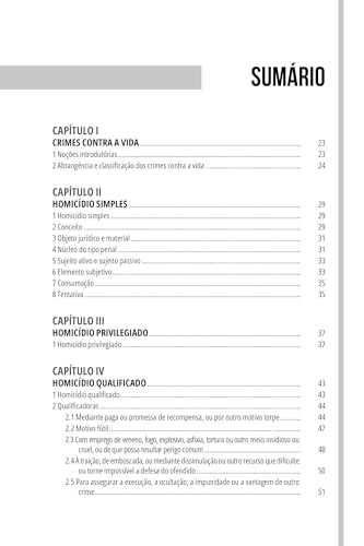 O manual tem como objetivo ofertar aos graduandos em Direito, aos que se preparam para os concursos públicos, bem assim aos operadores que labutam na jurisdição criminal, elementos teóricos, práticos e jurisprudenciais com vistas a compreender as nuances do Direito Penal, particularmente os Crimes contra a Vida (arts. 121 a 128 do Código Penal). Na obra, apresentamos o conteúdo de forma didática, com a metodologia de inserção de perguntas e respostas ao longo do texto, a fim de estabelecer um diálogo com o leitor, facilitando a assimilação da matéria nos pontos essenciais. O livro aborda as recentes mudanças legislativas e as tendências jurisprudenciais, oferecendo ao leitor uma visão atualizada e crítica sobre o tema, sem descuidar do Direito Comparado. Finalizou-se com a apresentação de coletânea selecionada de julgados dos Tribunais Superiores, além de questões objetivas para resolução e treino, acompanhadas do gabarito de respostas, oriundas dos diversos concursos das carreiras jurídicas realizados nos últimos anos. Desejamos, portanto, uma proveitosa leitura.