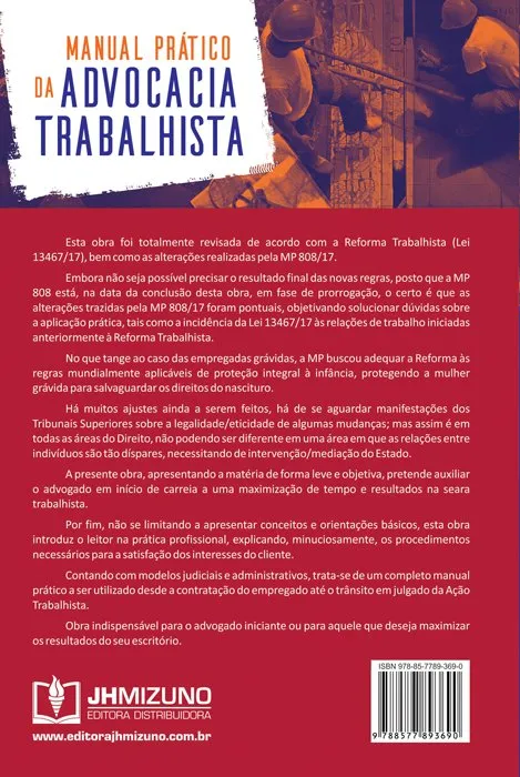 Esta obra foi totalmente revisada de acordo com a Reforma Trabalhista (Lei 13467/17), bem como as alterações realizadas pela MP 808/17. Embora não seja possível precisar o resultado final das novas regras, posto que a MP 808 está, na data da conclusão desta obra, em fase de prorrogação, o certo é que as alterações trazidas pela MP 808/17 foram pontuais, objetivando solucionar dúvidas sobre a aplicação prática, tais como a incidência da Lei 13467/17 às relações de trabalho iniciadas anteriormente à Reforma Trabalhista. No que tange ao caso das empregadas grávidas, a MP buscou adequar a Reforma às regras mundialmente aplicáveis de proteção integral à infância, protegendo a mulher grávida para salvaguardar os direitos do nascituro. Há muitos ajustes ainda a serem feitos, há de se aguardar manifestações dos Tribunais Superiores sobre a legalidade/eticidade de algumas mudanças; mas assim é em todas as áreas do Direito, não podendo ser diferente em uma área em que as relações entre indivíduos são tão díspares, necessitando de intervenção/mediação do Estado. A presente obra, apresentando a matéria de forma leve e objetiva, pretende auxiliar o advogado em início de carreia a uma maximização de tempo e resultados na seara trabalhista. Por fim, não se limitando a apresentar conceitos e orientações básicos, esta obra introduz o leitor na prática profissional, explicando, minuciosamente, os procedimentos necessários para a satisfação dos interesses do cliente. Contando com modelos judiciais e administrativos, trata-se de um completo manual prático a ser utilizado desde a contratação do empregado até o trânsito em julgado da Ação Trabalhista. Obra indispensável para o advogado iniciante ou para aquele que deseja maximizar os resultados do seu escritório.