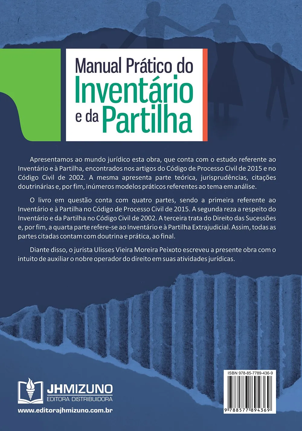 Apresentamos ao mundo jurídico esta obra, que conta com o estudo referente ao Inventário e à Partilha, encontrados nos artigos do Código de Processo Civil de 2015 e no Código Civil de 2002. A mesma apresenta parte teórica, jurisprudências, citações doutrinárias e, por fim, inúmeros modelos práticos referentes ao tema em análise. O livro em questão conta com quatro partes, sendo a primeira referente ao Inventário e à Partilha no Código de Processo Civil de 2015. A segunda reza a respeito do Inventário e da Partilha no Código Civil de 2002. A terceira trata do Direito das Sucessões e, por fim, a quarta parte refere-se ao Inventário e à Partilha Extrajudicial. Assim, todas as partes citadas contam com doutrina e prática, ao final. Diante disso, o jurista Ulisses Vieira Moreira Peixoto escreveu a presente obra com o intuito de auxiliar o nobre operador do direito em suas atividades jurídicas.