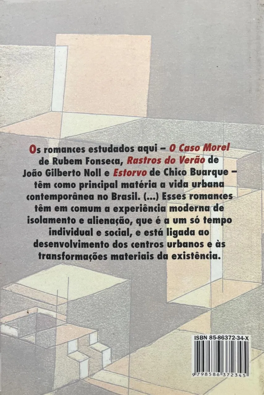 Os romances estudados aqui — O caso Morel, Rastros do verão e Estorvo — têm como principal matéria a vida urbana no Brasil. Esses romances têm em comum a experiência moderna de isolamento e alienação, que é a um só tempo individual e social, e está ligada ao desenvolvimento dos centros urbanos e às transformações materiais da existência.
