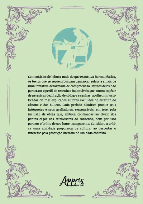 Comentários de leitura mais do que exaustiva hermenêutica, os textos que se seguem buscam demarcar sulcos e sinais de uma tentativa desarmada de compreensão. Muitos deles não perderam o perfil de resenhas indomáveis que, numa espécie de perspicaz decifração de códigos e senhas, acolhem injustificados ou mal explicados autores excluídos do estatuto do cânone e dos áulicos. Cada período histórico produz seus intérpretes e seus avaliadores, responsáveis, em tese, pela inclusão de obras que, embora confinadas ao olvido dos pontos cegos dos retrovisores do consenso, nem por isso perdem o brilho de seu lume transparente. Considero a crítica uma atividade propulsora de cultura, ao despertar o interesse pela produção literária de um dado contexto.
