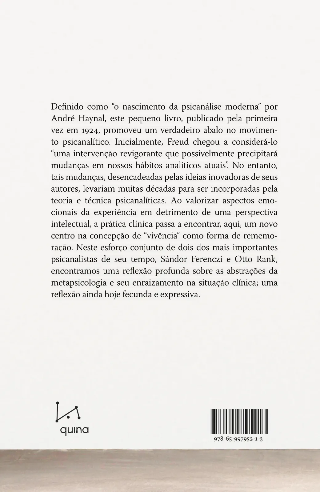 Definido como “o nascimento da psicanálise moderna” por André Haynal, este pequeno livro, publicado pela primeira vez em 1924, promoveu um verdadeiro abalo no movimento psicanalítico. Inicialmente, Freud chegou a considerá-lo “uma intervenção revigorante que possivelmente precipitará mudanças em nossos hábitos analíticos atuais”. No entanto, tais mudanças, desencadeadas pelas ideias inovadoras de seus autores, levariam muitas décadas para ser incorporadas pela teoria e técnica psicanalíticas.