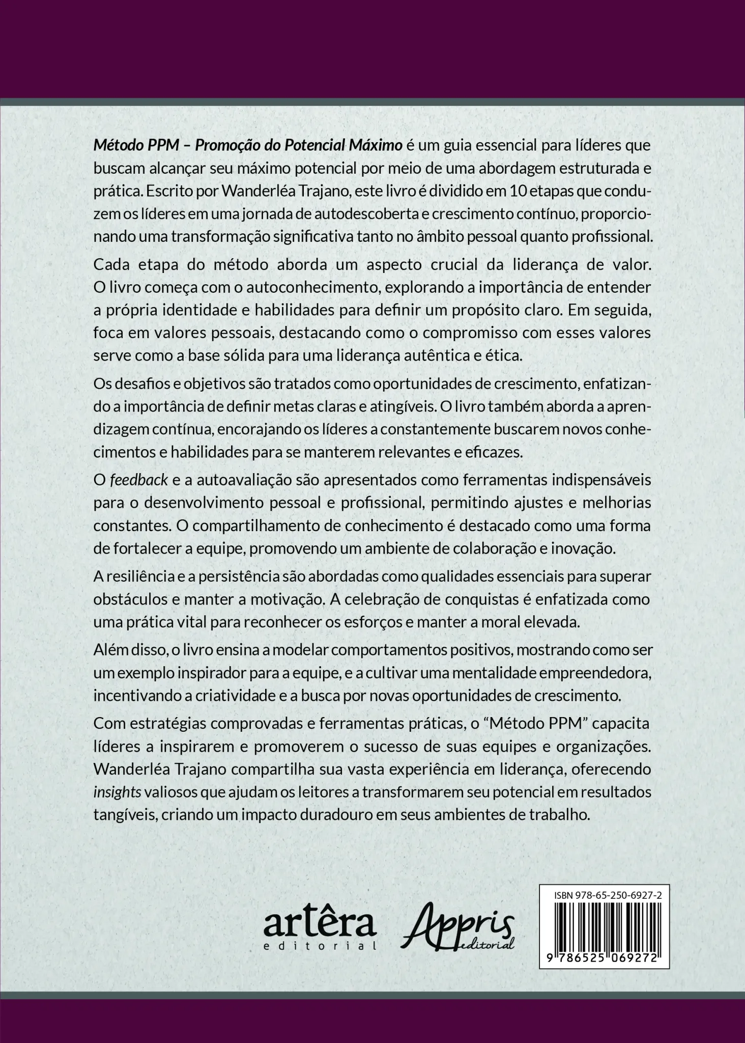 Método PPM – Promoção do Potencial Máximo é um guia essencial para líderes que buscam alcançar seu máximo potencial por meio de uma abordagem estruturada e prática. Escrito por Wanderléa Trajano, este livro é dividido em 10 etapas que conduzem os líderes em uma jornada de autodescoberta e crescimento contínuo, proporcionando uma transformação significativa tanto no âmbito pessoal quanto profissional.