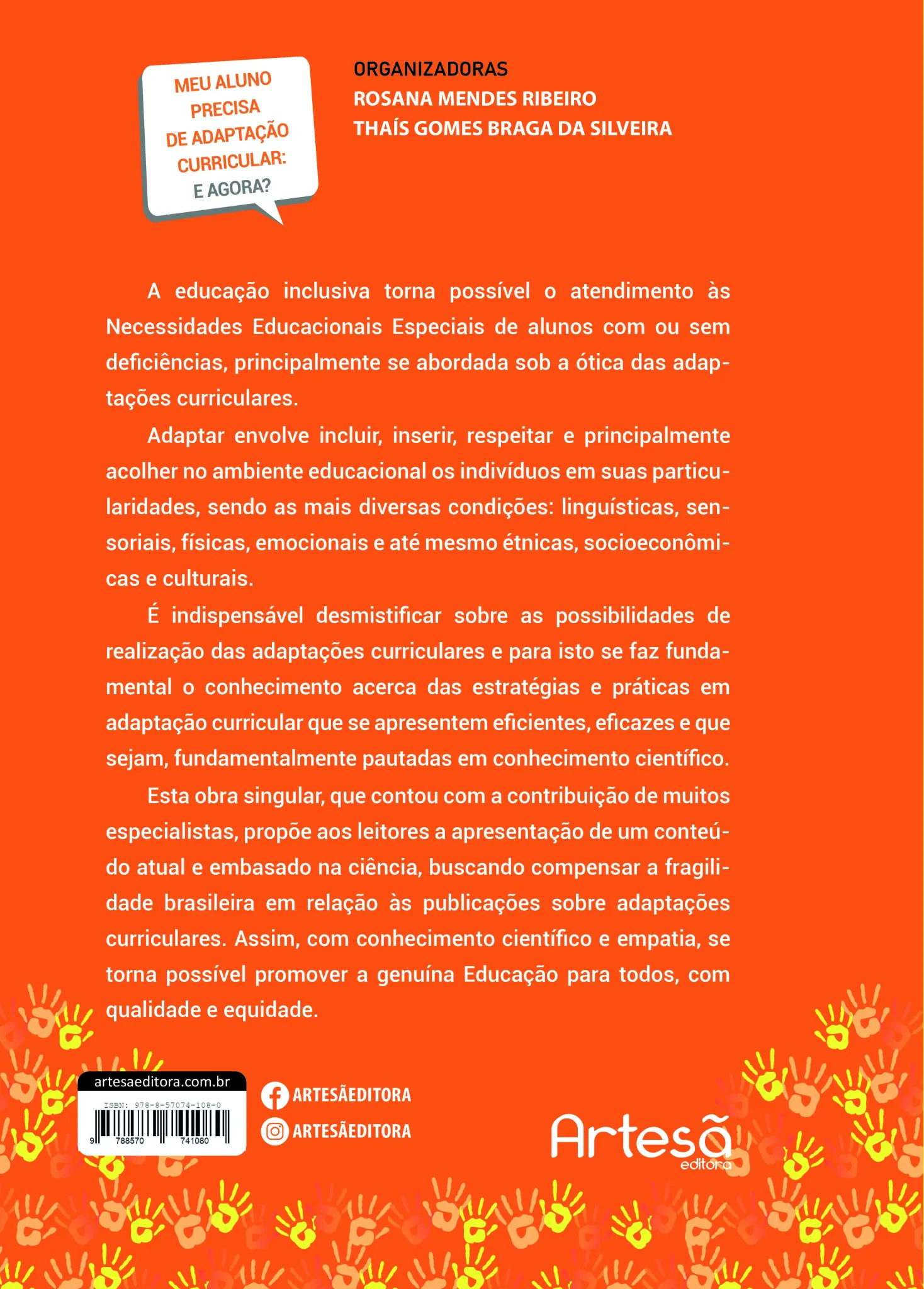 sendo as mais diversas condições: linguísticas, sensoriais, físicas, emocionais e até mesmo étnicas, socioeconômicas e culturais. É indispensável desmistificar sobre as possibilidades de realização das adaptações curriculares e para isto se faz fundamental o conhecimento acerca das estratégias e práticas em adaptação curricular que se apresentem eficientes, eficazes e que sejam, fundamentalmente pautadas em conhecimento científico. Esta obra singular, que contou com a contribuição de muitos especialistas, propõe aos leitores a apresentação de um conteúdo atual e embasado na ciência, buscando compensar a fragilidade brasileira em relação às publicações sobre adaptações curriculares. Assim, com conhecimento científico e empatia, se torna possível promover a genuína Educação para todos, com qualidade e equidade.