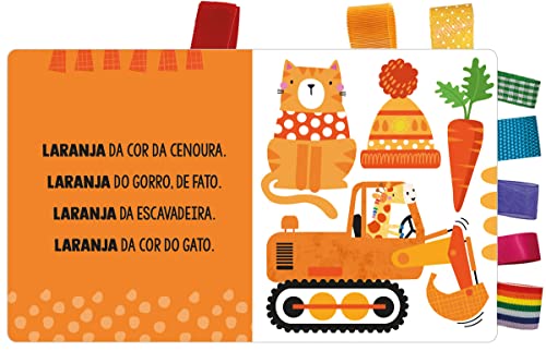 Explore as páginas coloridas e sinta as texturas das fitas deste livro, ideal para os pequenos aprenderem as cores.