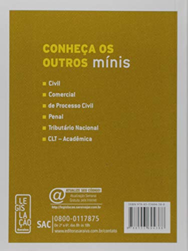 Especificação: Minicódigo Saraiva – Processo penal: Constituição Federal e legislação complementar