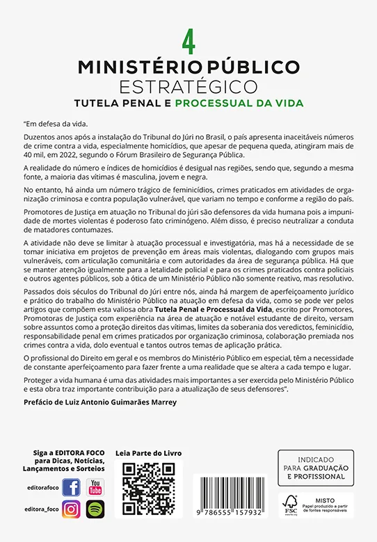 Sobre a obra Ministério Público Estratégico – Vol 4 – Tutela Penal e Processual da Vida – 1ª Ed – 2023