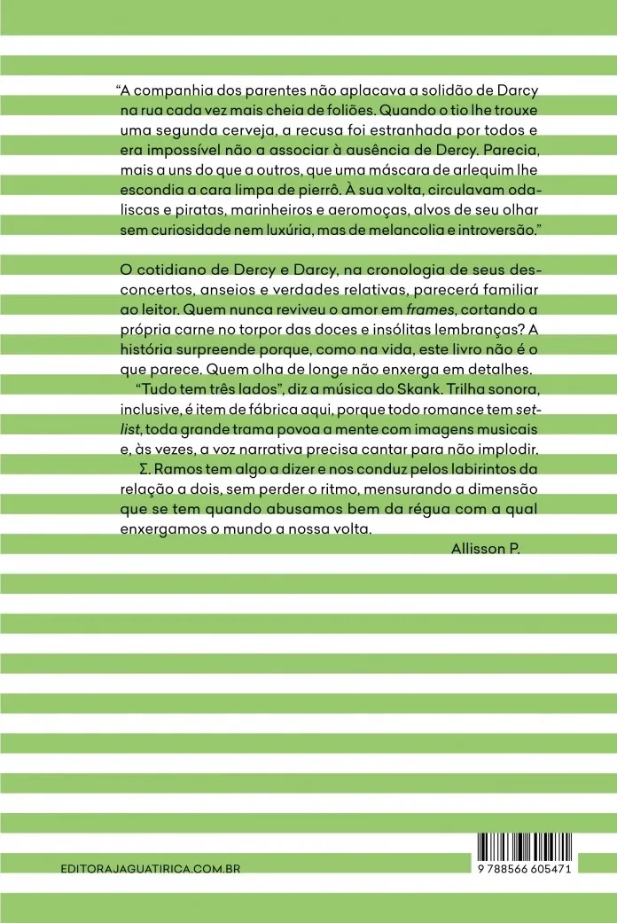 Às vésperas do Carnaval, uma publicitária e um designer casados há quase dois anos se afastam sem comum acordo. Um passa o feriado no apartamento de Copacabana e o outro se refugia numa casa de serra com colegas do trabalho. A narrativa desses dias é intercalada com flashbacks que retomam o namoro à distância entre Rio e São Paulo, o início da vida conjugal e os antecedentes da separação. O texto não esclarece qual cônjuge vive cada enredo, imprecisão reforçada pelos nomes comuns de dois gêneros, Darcy e Dercy, o que deixa a (in)decisão a cargo do leitor.