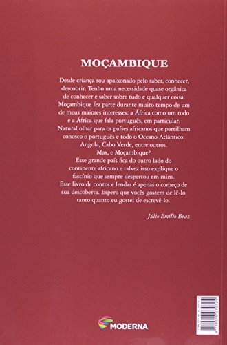 Desde criança sou apaixonado pelo saber, conhecer, descobrir. Tenho uma necessidade quase orgânica de conhecer e saber sobre tudo e qualquer coisa. Moçambique fez parte durante muito tempo de um de meus maiores interesses: a África como um todo e a África que fala português, em particular. Natural olhar para os países africanos que partilham conosco o português e todo o Oceano Atlântico: Angola, Cabo Verde, entre outros. Mas, e Moçambique? Esse grande país fica do outro lado do continente africano e talvez isso explique o fascínio que sempre despertou em mim. Esse livro de contos e lendas é apenas o começo de sua descoberta. Espero que vocês gostem de lê-lo tanto quanto eu gostei de escrevê-lo. Júlio Emilio Braz