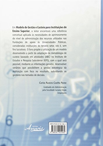 Em Modelo de Gestão e Custeio para Instituições de Ensino Superior, o leitor encontrará uma referência conceitual aplicada às necessidades de aprimoramento do nível de administração dos recursos utilizados nas Fundações de apoio às Universidades Públicas, consideradas instituições do terceiro setor, isto é, sem fins lucrativos. O livro propõe a utilização de um modelo desenvolvido a partir da adaptação da metodologia de custeio baseado em atividades (ABC) no Instituto de Estudos e Pesquisa Sobralense (IEPS), com o qual será possível, mediante as informações geradas, desenvolver cenários que possibilitem a gestão estratégica da instituição com foco no resultado, subsidiando os gestores nas tomadas de decisão. Carlos Ruvens Coelho Ponte Graduado em Administração pela Faculdade Luciano Feijão Empresário