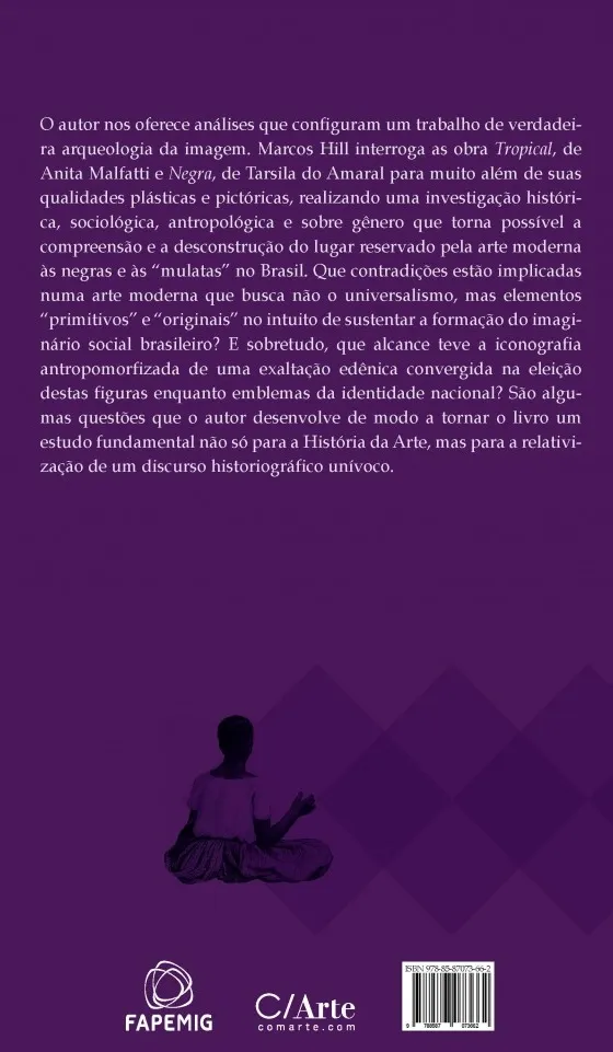 O autor nos oferece análises que configuram um trabalho de verdadeira arqueologia da imagem. Marcos Hill interroga as obra Tropical, de Anita Malfatti e A Negra, de Tarsila do Amaral para muito além de suas qualidades plásticas e pictóricas, realizando uma investigação histórica, sociológica, antropológica e sobre gênero que torna possível a compreensão e a desconstrução do lugar reservado pela arte moderna às negras e às “mulatas” no Brasil. Que contradições estão implicadas numa arte moderna que busca não o universalismo, mas elementos “primitivos” e “originais” no intuito de sustentar a formação do imaginário social brasileiro? E sobretudo, que alcance teve a iconografia antropomorfizada de uma exaltação edênica convergida na eleição destas figuras enquanto emblemas da identidade nacional? São algumas questões que o autor desenvolve de modo a tornar o livro um estudo fundamental não só para a História da Arte, mas para a relativização de um discurso historiográfico unívoco.