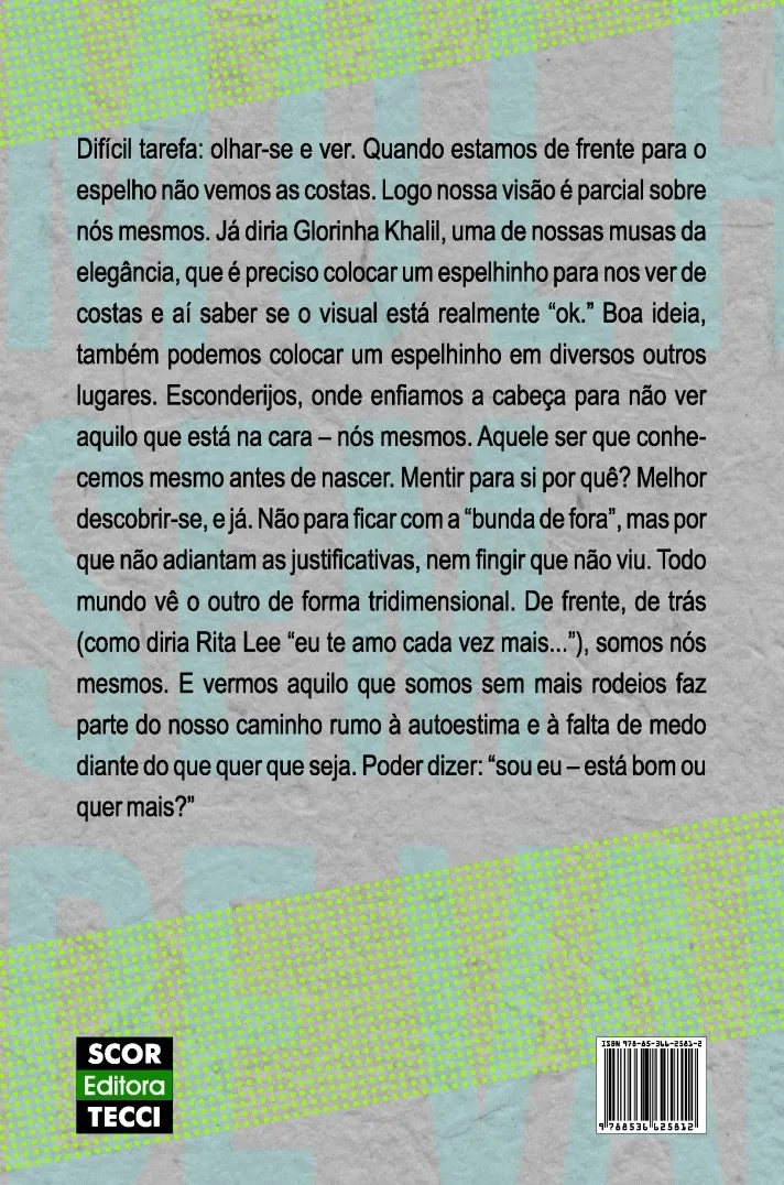 Este livro é uma seleção de crônicas, escritas de forma livre e regularmente pela autora que além de redatora publicitária, é Psicóloga, Socióloga, com formação em Terapia de Família, que, sem dar conselhos, compartilha através de seu olhar eclético, crítico momentos da vida cotidiana, relacionamento com filhos, vida afetiva, cinema, lugar que a mulher ainda ocupa na sociedade. Nada que se pareça com auto ajuda, mas um caminho claro e divertido para uma boa reflexão.