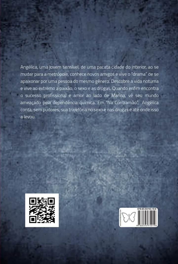 Angélica, uma jovem sensível, de uma pacata cidade do interior, ao se mudar para a metrópole, conhece novos amigos e vive o “drama” de se apaixonar por uma pessoa do mesmo gênero. Descobre a vida noturna e vive ao extremo a paixão, o sexo e as drogas. Quando enfim encontra o sucesso profissional e amor ao lado de Marina, vê seu mundo ameaçado pela dependência química. Em “Na Contramão”, Angélica conta, sem pudores, sua trajetória no sexo e nas drogas e até onde isso a levou.