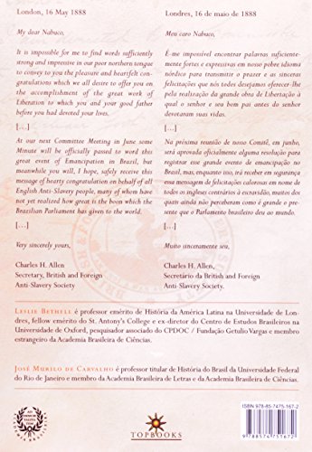 Esta edição bilíngue, em convênio com a ABL, reúne 110 cartas trocadas ao longo de 25 anos entre Nabuco e os dirigentes da British and Foreign Anti-Slavery Society e outros militantes britânicos da causa abolicionista. Os organizadores, que também assinam a bem cuidada introdução, destacam que “a parceria com os antiescravistas da Grã-Bretanha, embora conseguisse criar pressão internacional em favor da abolição no Brasil, oferecia graves riscos à carreira política de Nabuco, expondo-o à acusação de antipatriotismo que então se fez ouvir contra ele, da mesma maneira que, cerca de 90 anos depois, o regime militar acusaria de antipatriótico quem denunciasse lá fora os seus abusos e as desigualdades sociais imperantes no Brasil”, como assinala Evaldo Cabral de Mello na apresentação do livro. José Murilo é professor titular de História do Brasil da UFRJ, membro da Academia Brasileira de Letras e da Academia Brasileira de Ciências; Leslie Bethell é professor emérito de História da América Latina da Universidade de Londres e pesquisador associado do CPDOC/FGV
