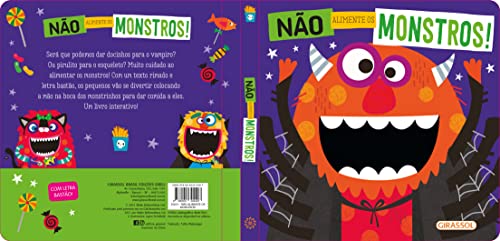 Será que podemos dar docinhos para o vampiro? Ou pirulito para o esqueleto? Muito cuidado ao alimentar os monstros! Com um texto rimado e letra bastão, os pequenos vão se divertir colocando a mão na boca dos monstrinhos para dar comida a eles. Um livro interativo!
