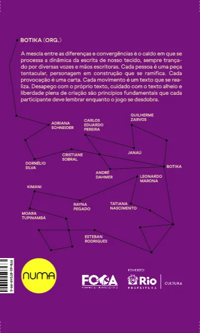 “Narrativas Imprevisíveis é o livro-piloto da Coleção Tabuleiro de Ficções, a primeira experiência, o embrião que irá se desdobrar em muitos livros, sempre trançados por diversas vozes e mãos escritoras.