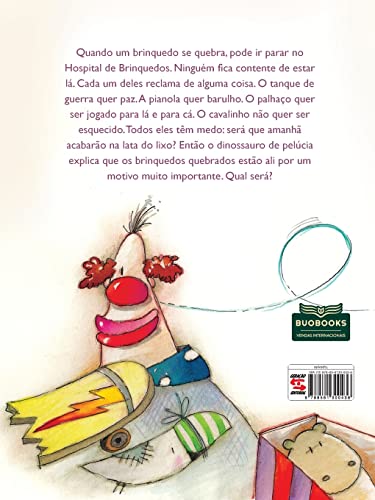 Quando um brinquedo se quebra, pode ir parar no Hospital de Brinquedos. Ninguém fi ca contente de estar lá. Cada um deles reclama de alguma coisa. O tanque de guerra quer paz. A pianola quer barulho. O palhaço quer ser jogado para lá e para cá. O cavalinho não quer ser esquecido. Todos eles têm medo: será que amanhã acabarão na lata do lixo? Então o dinossauro de pelúcia explica que os brinquedos quebrados estão ali por um motivo muito importante. Qual será?