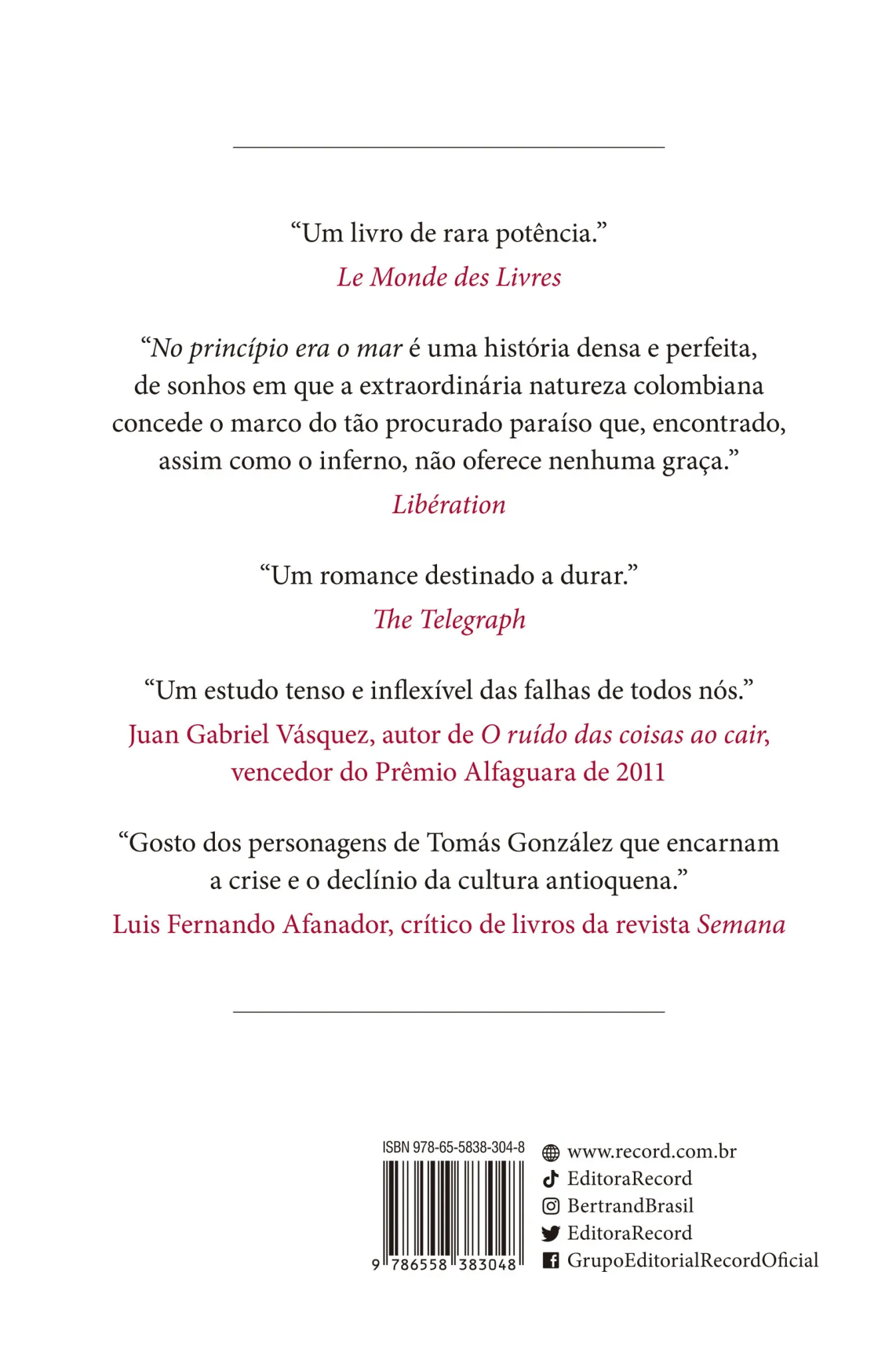 Definido pelos críticos como o segredo mais bem-guardado da Colômbia, Tomás González consegue com No princípio era o mar superar o preconceito de que a literatura colombiana se resume a realismo mágico, assassinos de aluguel e traficantes de drogas.