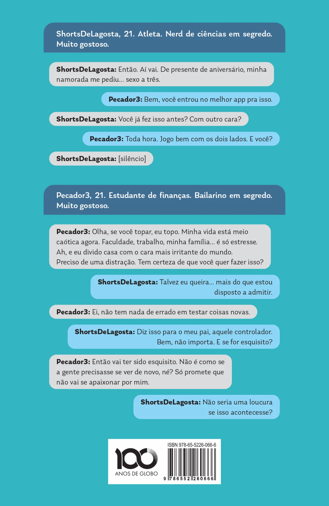 Keaton Hayworth III tem tudo sob controle — ou quase. Namoro estável, um futuro promissor na empresa do pai e a presidência da fraternidade Alpha Delta praticamente garantida. Mas tudo muda quando sua namorada pede um presente inusitado de aniversário: uma noite a três. Para agradá-la, Keaton entra em um aplicativo de encontros anônimos e começa a trocar mensagens com um desconhecido misterioso, espirituoso e… surpreendentemente envolvente.