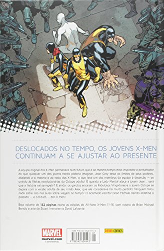 DESLOCADOS NO TEMPO, OS JOVENS X-MEN CONTINUAM A SE AJUSTAR AO PRESENTE! A equipe original dos X-Men permanece num futuro que é ao mesmo tempo mais inspirador e perturbador do que qualquer um dos jovens heróis poderia imaginar. Jean Grey testa os limites de seus poderes, abalando a si mesma e ao resto dos X-Men, o que leva um dos membros da equipe à deserção — e a se unir às fileiras revolucionárias do Ciclope adulto! E quando a Lady Mental ataca a jovem Jean… será que a história vai se repetir? E ainda: os garotos encaram os Fabulosos Vingadores e o jovem Ciclope se depara com a versão adulta de seu irmão Alex, que ele considerava há muito perdido! Ninguém falou nada sobre isso nas aulas de viagem no tempo! O aclamado escritor Brian Michael Bendis redefine o passado — e o futuro — dos X-Men! (All-New X-Men 11-15)